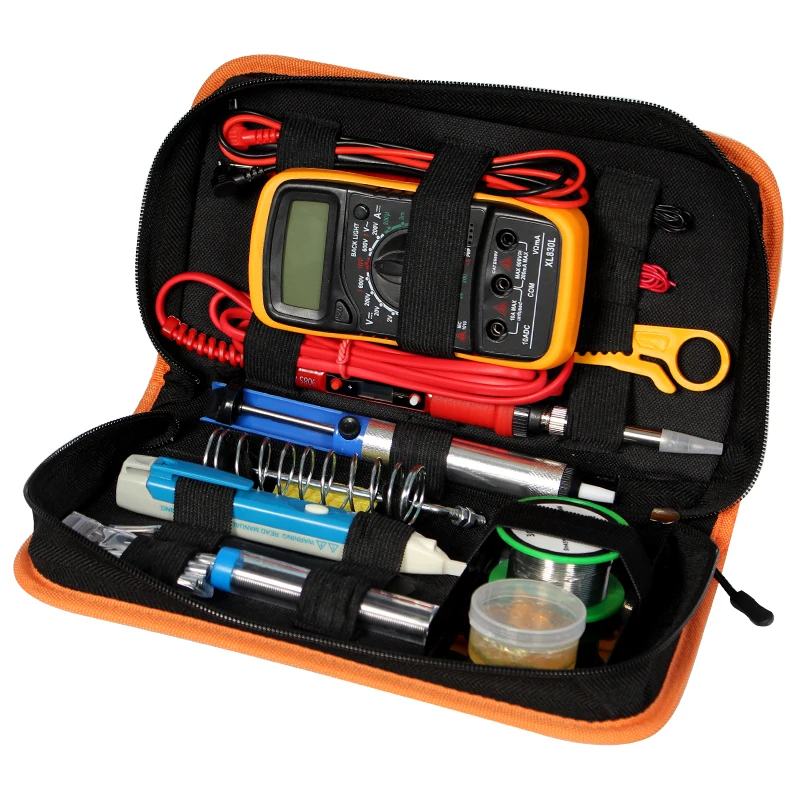 ?Dê uma visão!: Kit de ferro de solda elétrico de temperatura 110V 220V 80W Kit de ferro de solda com kit de ferramentas de soldagem multímetro XL830L