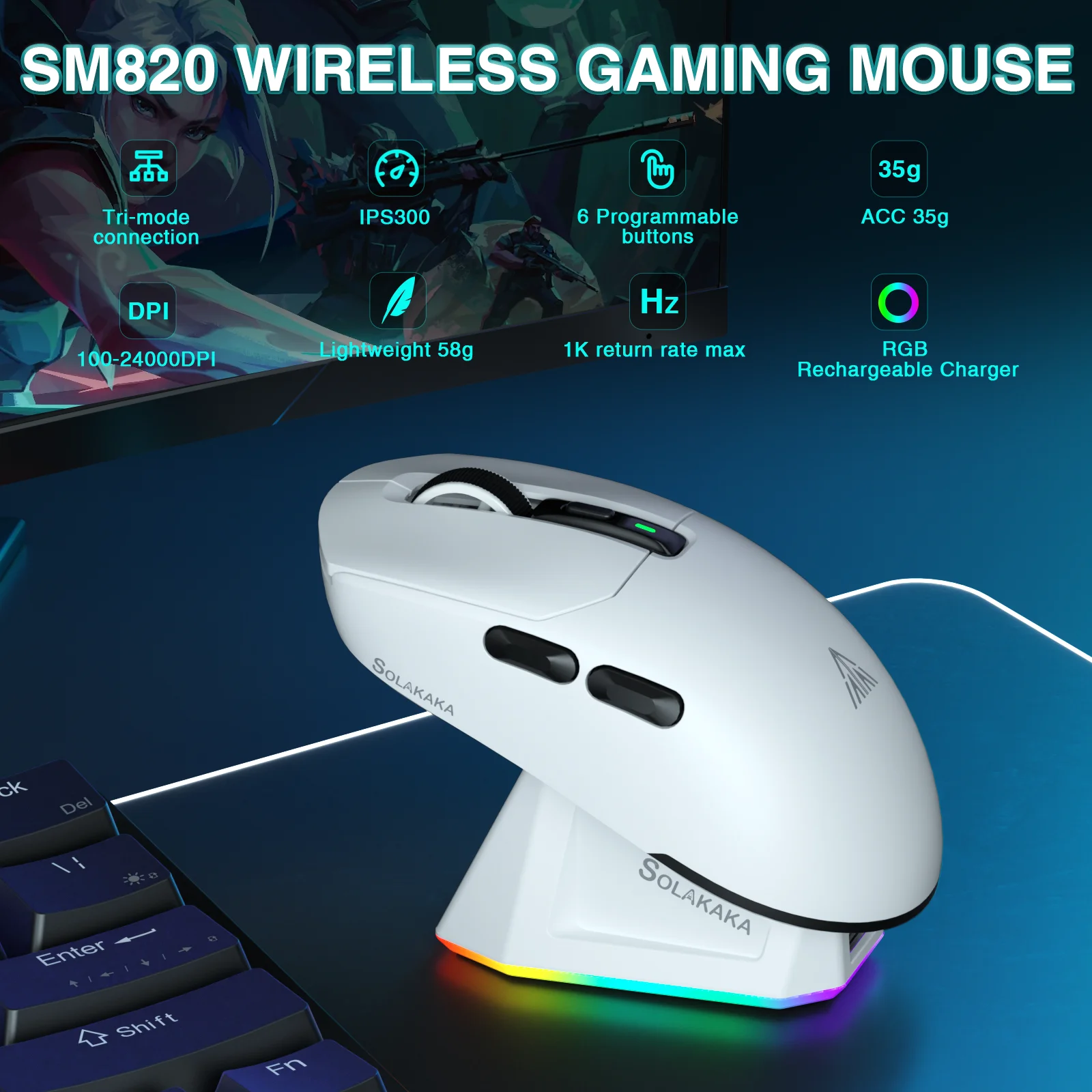 Nome: Mouse para jogos trimodo SOLAKAKA SM820