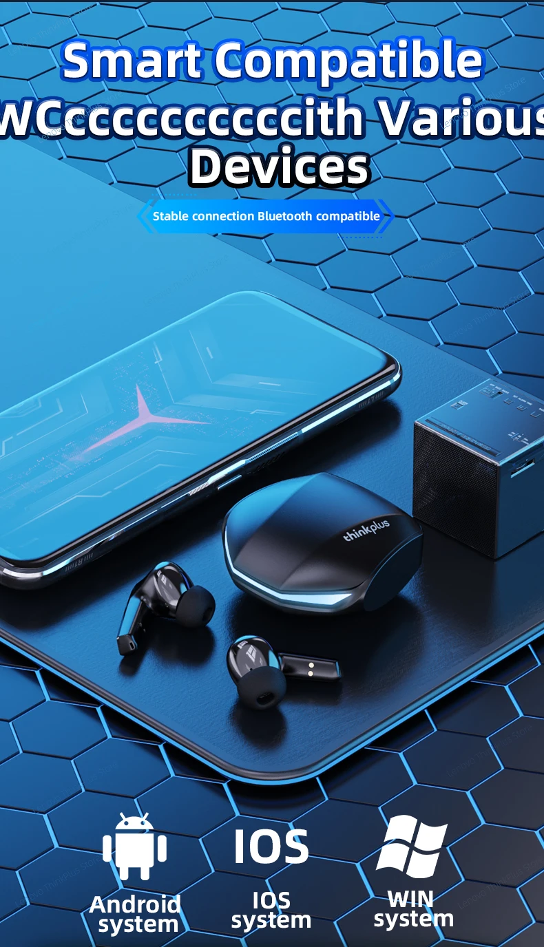 O mais novo design de fones de ouvido da Lenovo em 2022. Modo duplo para música/jogo, chip de jogos personalizado, baixa latência para jogos, confortável de usar, decodificação de áudio AAC HD