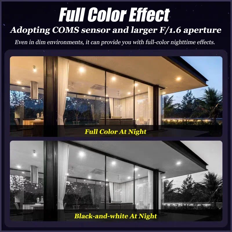 Esta câmera interna possui 3 milhões de pixels e uma resolução de imagem de até 4K.Quer se trate de ficar de olho no seu bebê/animal de estimação em ambientes fechados ou na segurança da sua casa ao ar livre, as câmeras de segurança doméstica garantem vídeo cristalino de alta definição, permitindo que você veja facilmente a cada momento.A câmera externa funciona com 2.Wi-Fi 4Ghz, não compatível com 5Ghz